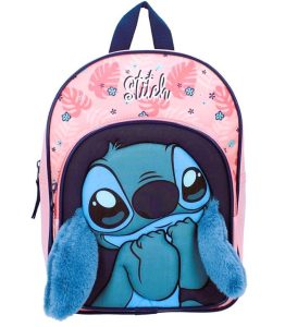 Design: Taška má pastelové barvy, převážně modrou a růžovou, s potiskem Stitche a květin, a je navržena pro děti.